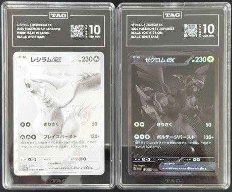 SET 2 TAG 10 GEM MINT JAPANESE POKEMON 2025 RESHIRAM ex & ZEKROM ex 174/086