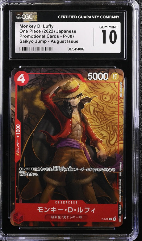 CGC 10 GEM MINT Japanese One Piece 2022 Monkey D Luffy P-007 Saikyo Jump August