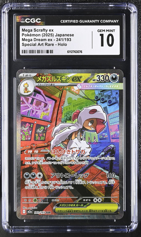 CGC 10 GEM MINT JAPANESE POKEMON 2025 Mega Scrafty ex 241/193 MEGA Dream ex M2a
