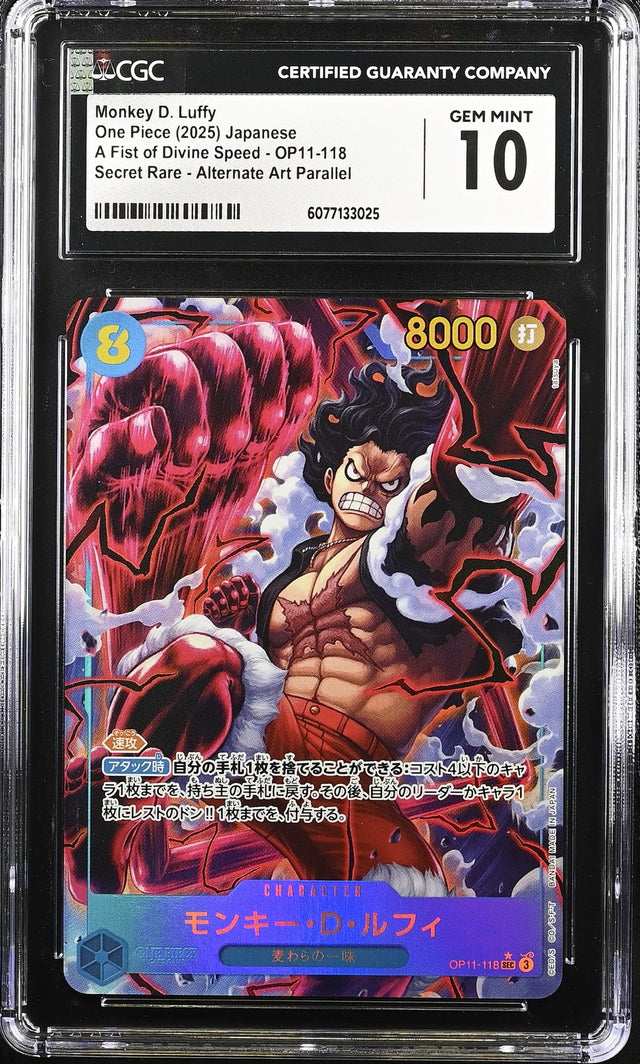 CGC 10 GEM MINT Japanese One Piece 2025 Monkey D. Luffy OP11-118 OP11-A