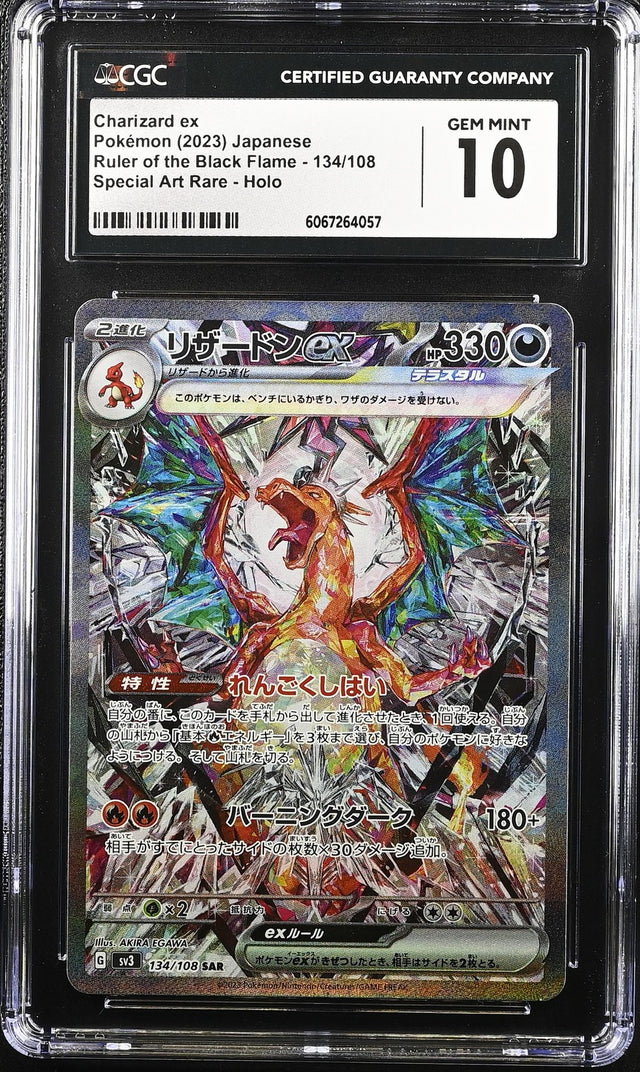 CGC 10 GEM MINT JAPANESE POKEMON 2023 CHARIZARD ex 134/108 SAR BLACK FLAME SV3