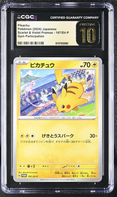 CGC 10 PRISTINE Japanese Pokemon 2024 PIKACHU 197/SV-P Gym Event PROMO