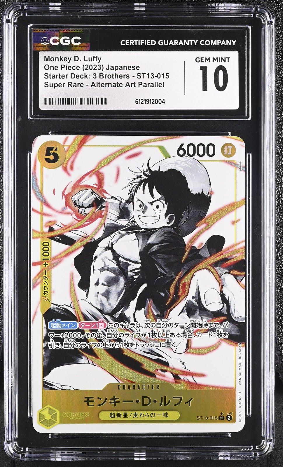CGC 10 GEM MINT Japanese ONE PIECE 2023 MONKEY D. LUFFY ST13-015 The Three