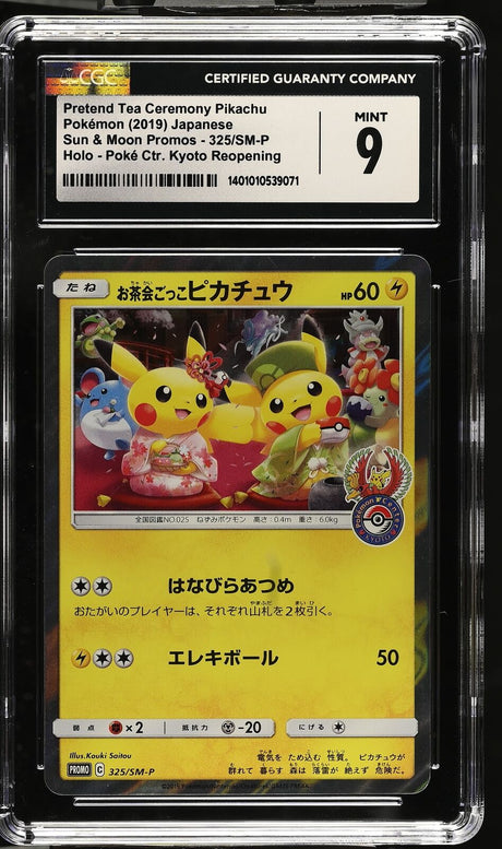 - PKMhobby - CGC 9 MINT Japanese Pokemon 2019 Pretend Tea Ceremony Pikachu 325/SM-P PROMO Regular price $137.99Unit price /Unavailable