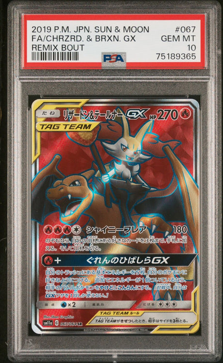 - PKMhobby - PSA 10 GEM MINT JAPANESE POKEMON 2019 CHARIZXARD BRAIXIEN GX 067/064 REMIX SM11a Regular price $135.00Unit price /Unavailable