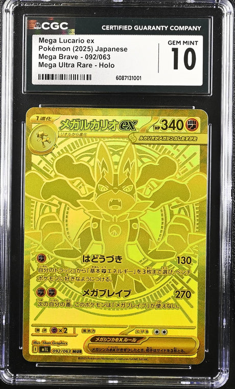 CGC 10 GEM MINT JAPANESE POKEMON 2025 Mega Lucario EX 092/063 MEGA Brave M1L
