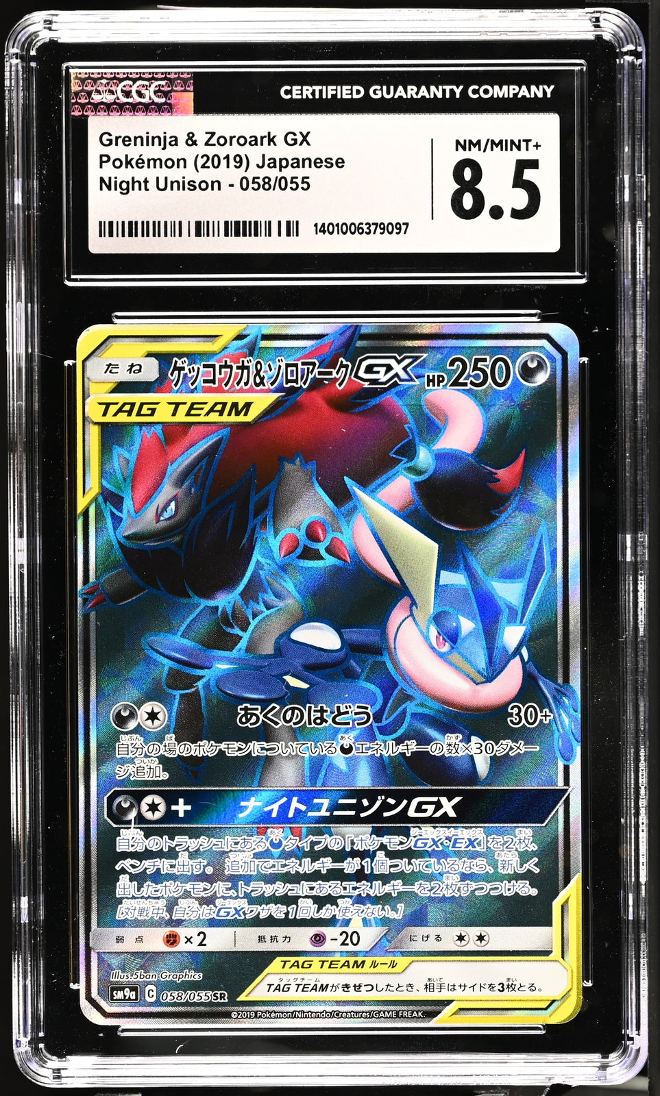 CGC 8.5 NM/MINT+ Japanese Pokemon 2019 Greninja & Zoroark GX 058/055 Night SM9a