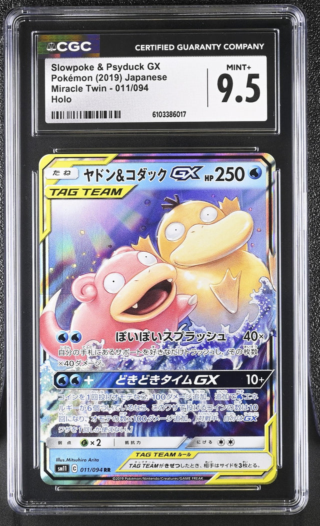 CGC 9.5 MINT+ Japanese Pokemon 2019 Slowpoke & Psyduck GX 011/094 SM11
