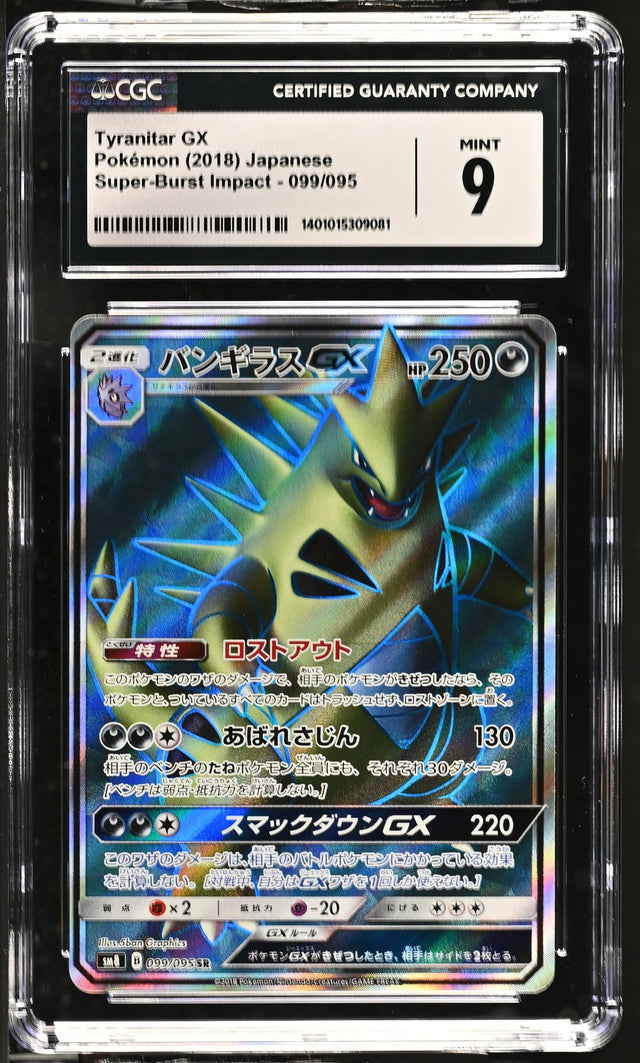 CGC 9 MINT JAPANESE POKEMON 2018 Tyranitar GX 099/095 Super-Burst Impact SM8 is backordered and will ship as soon as it is back in stock.