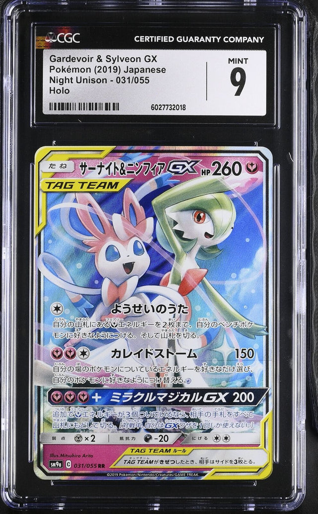 CGC 9 MINT Japanese Pokemon 2019 Gardevoir & Sylveon GX 031/055 SM9a is backordered and will ship as soon as it is back in stock.