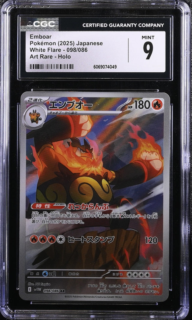 CGC 9 MINT JAPANESE POKEMON 2025 Emboar 098/086 White SV11W