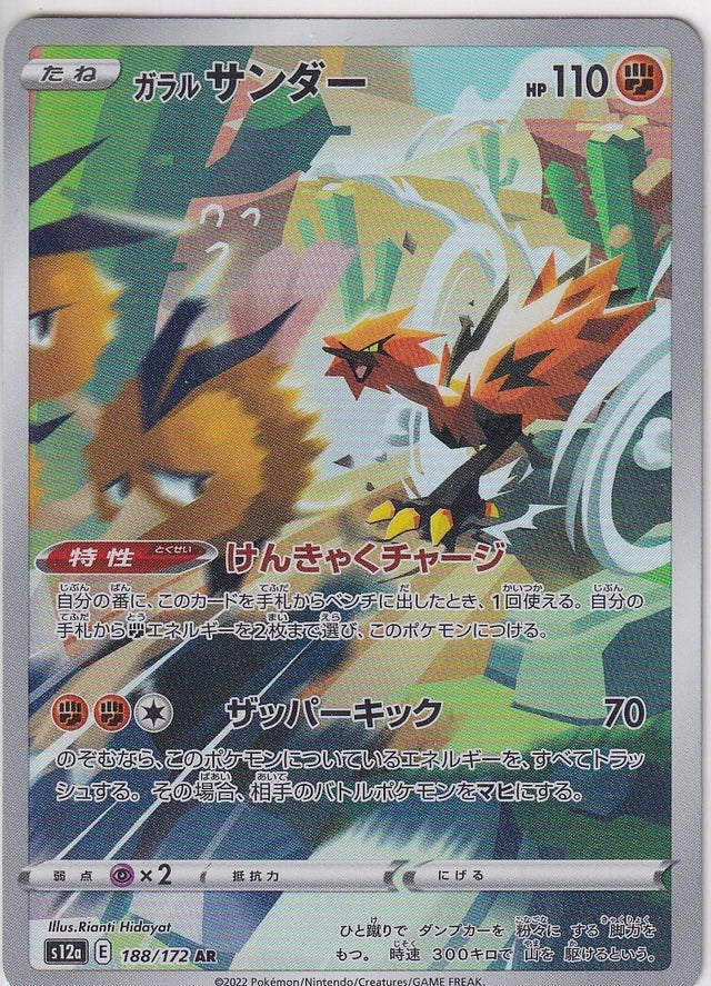 Japanese Pokemon Card Galarian Zapdos AR 188/172 V.STAR Universe S12a 2022