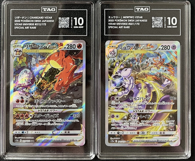 SET 2 TAG 10 GEM MINT Japanese Pokemon CHARIZARD MEWTWO VST 212/172 221/172 S12a