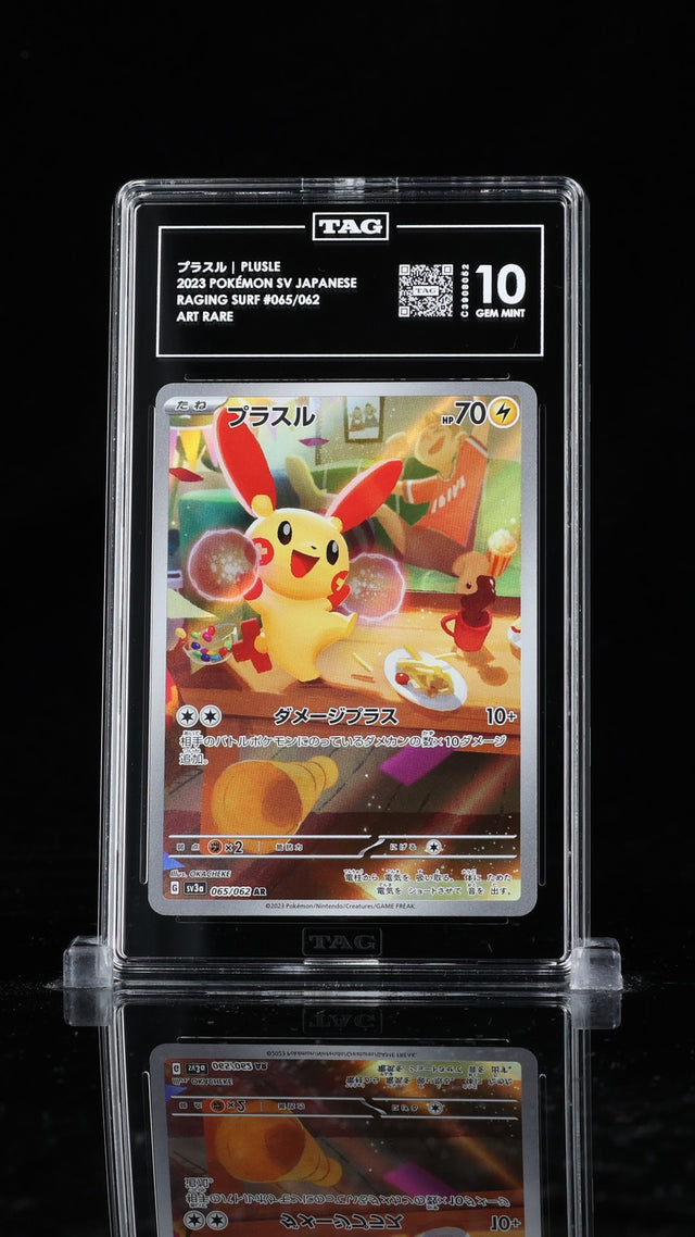 TAG 10 GEM MINT JAPANESE POKEMON 2023 PLUSLE 065/062 RAGING SURF ART RARE SV3a is backordered and will ship as soon as it is back in stock.