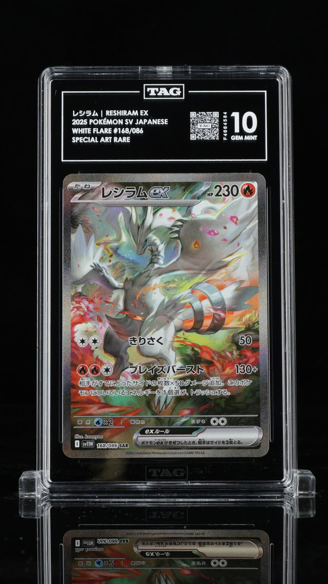 TAG 10 GEM MINT JAPANESE POKEMON 2025 Reshiram ex 168/086 White SV11W