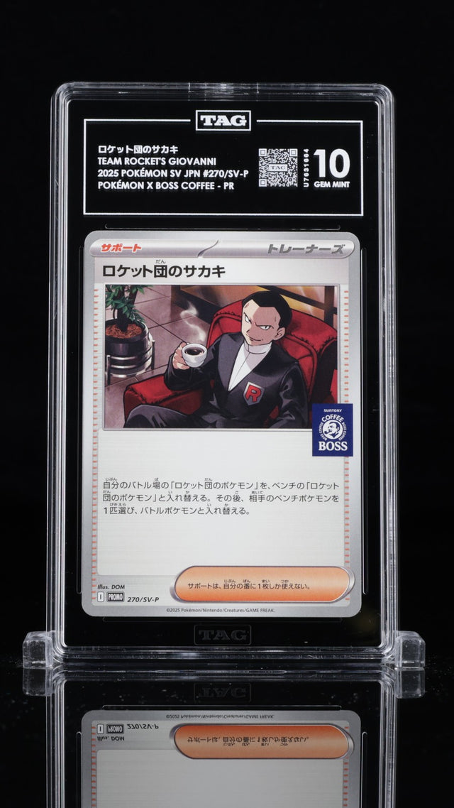 TAG 10 GEM MINT Japanese Pokemon 2025 Team Rocket's Giovanni 270/SV-P PROMO is backordered and will ship as soon as it is back in stock.