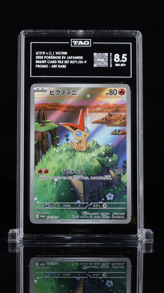 TAG 8.5 NM MT+ Japanese Pokemon 2025 VICTINI 271/SV-P BLACK & WHITE FLARE PROMO