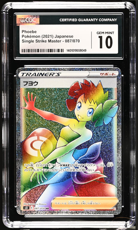 CGC 10 GEM MINT Japanese Pokemon 2021 Phoebe 087/070 Single Strike Master S5I