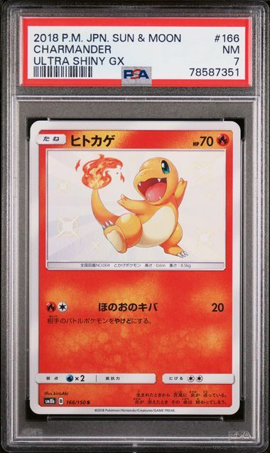 PSA 7 NEAR MINT JAPANESE POKEMON 2018 CHARMANDER 166/150 ULTRA SHINY GX SM8b