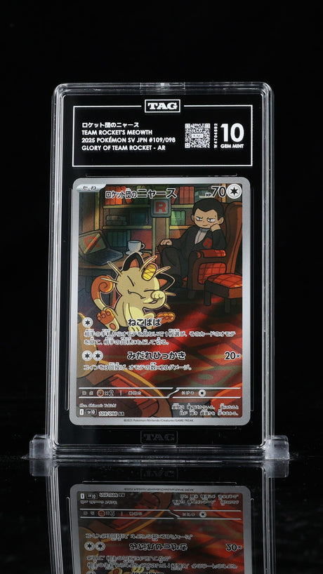 TAG 10 GEM MINT JAPANESE POKEMON 2025 Team Rocket's Meowth 109/098 Glory sv10