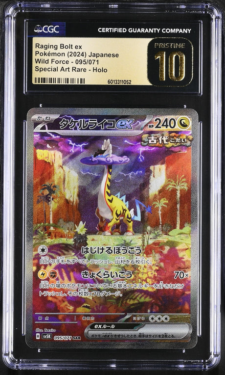 CGC 10 PRISTINE JAPANESE POKEMON 2024 RAGING BOLT EX 095/071 SV5K WILD FORCE SAR
