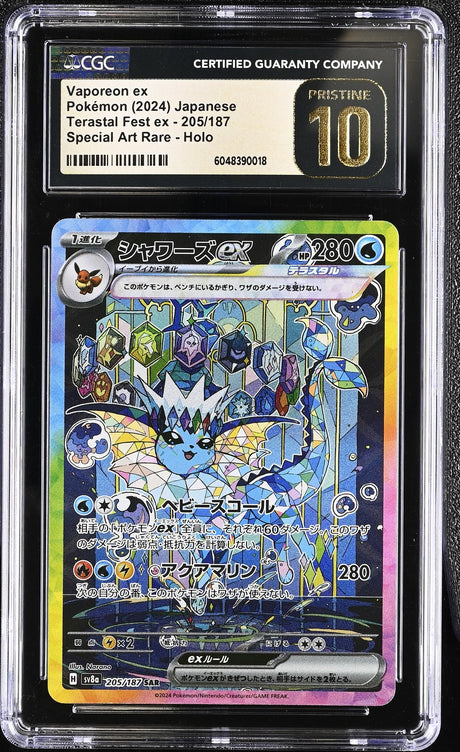 CGC 10 PRISTINE JAPANESE POKEMON 2024 VAPOREON EX 205/187 TERASTAL FESTIVAL SV8a