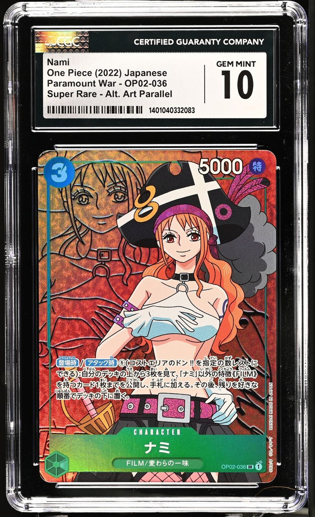 CGC 10 GEM MINT Japanese One Piece 2022 Nami OP02-036 Paramount War Alt Art SR