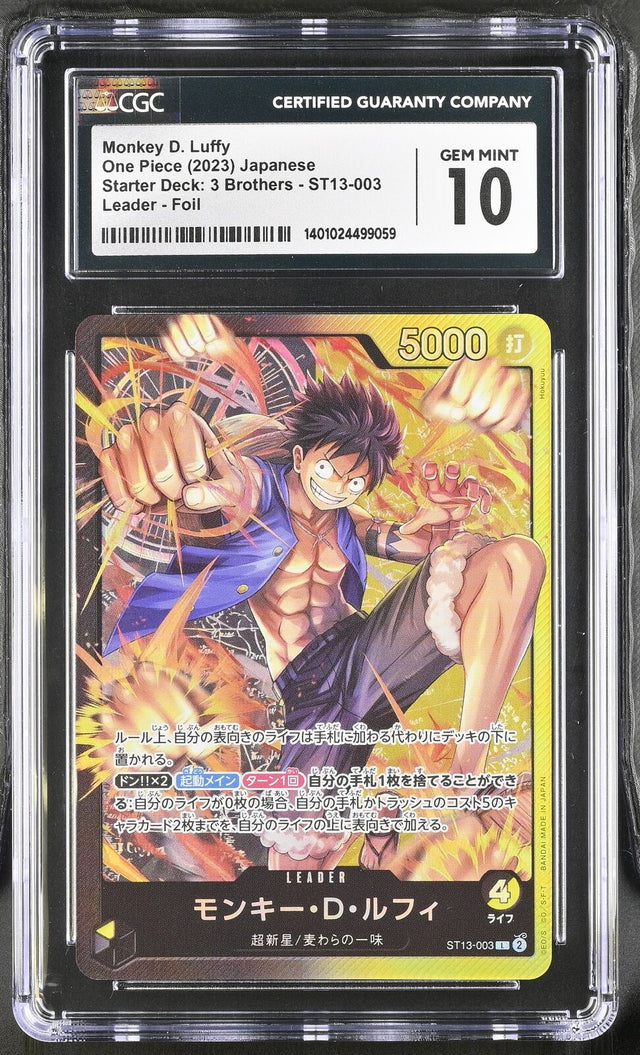 CGC 10 GEM MINT JAPANESE ONE PIECE 2023 MONKEY D. LUFFY ST13-003 THREE BROTHERS