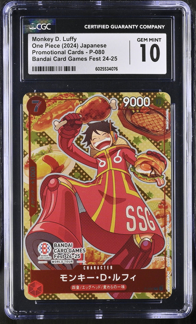 CGC 10 GEM MINT Japanese One Piece 2024 MONKEY D. LUFFY P-080 BANDAI CARD GAMES