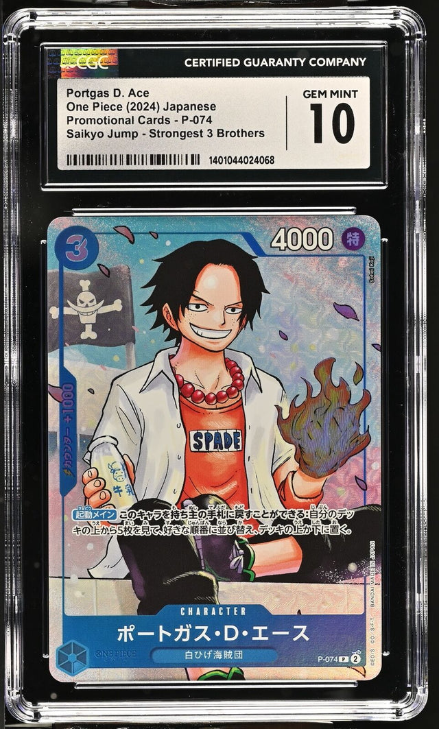 CGC 10 GEM MINT Japanese One Piece 2024 Portgas D. Ace P P-074 SAIKYO JUMP