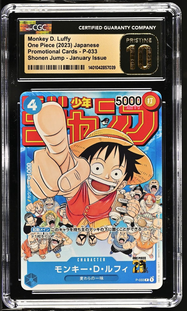 CGC 10 PRISTINE Japanese One Piece 2023 Monkey D. Luffy P-033 Shonen Jump is backordered and will ship as soon as it is back in stock.