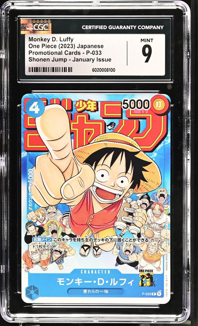 CGC 9 MINT Japanese One Piece 2023 Monkey D. Luffy P-033 Shonen Jump is backordered and will ship as soon as it is back in stock.