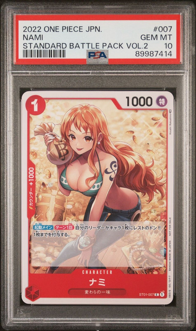 PSA 10 GEM MINT JAPANESE ONE PIECE 2022 Nami ST01-007 Standard Battle Champion is backordered and will ship as soon as it is back in stock.