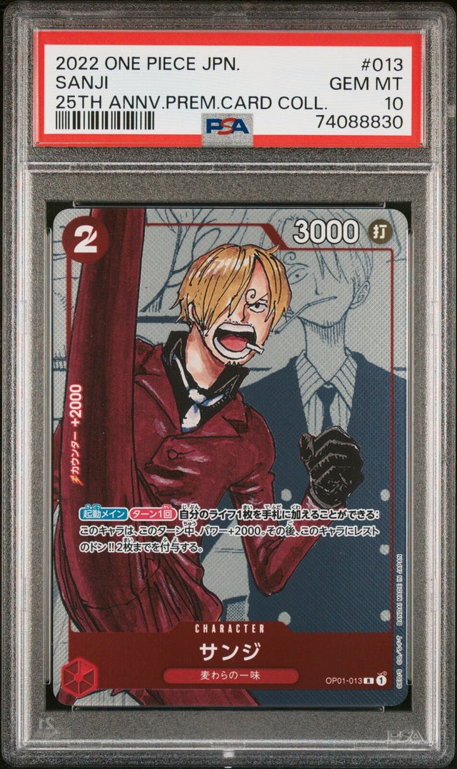 PSA 10 GEM MINT JAPANESE ONE PIECE 2022 SANJI OP01-013 25TH ANV PREM.CARD COLL.