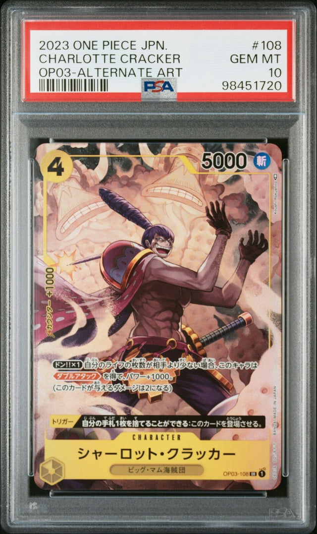 PSA 10 GEM MINT JAPANESE ONE PIECE 2023 CHARLOTTE CRACKER OP03-108 ALT ART