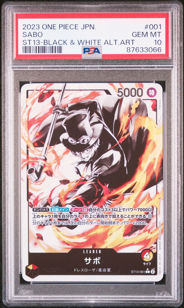 PSA 10 GEM MINT JAPANESE ONE PIECE 2023 SABO ST13-001 BLACK&WHITE ALT ART