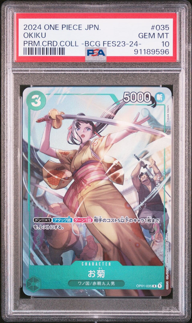 PSA 10 GEM MINT JAPANESE ONE PIECE 2024 OKIKU OP01-035 PREMIUM CARD COLL