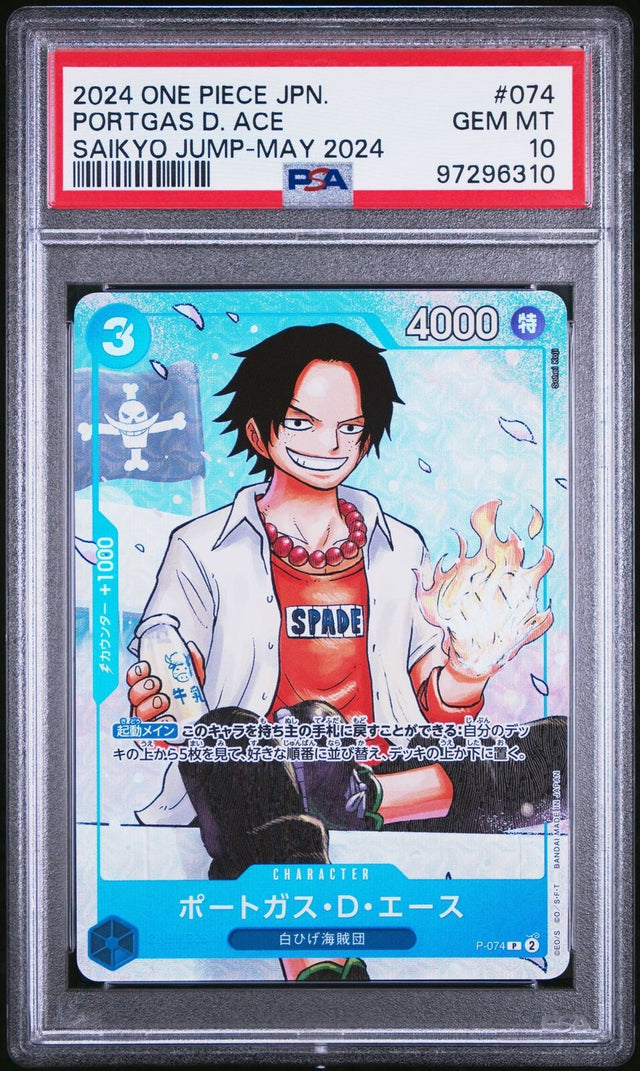 PSA 10 GEM MINT JAPANESE ONE PIECE 2024 Portgas D. Ace P-074 Saikyo Jump