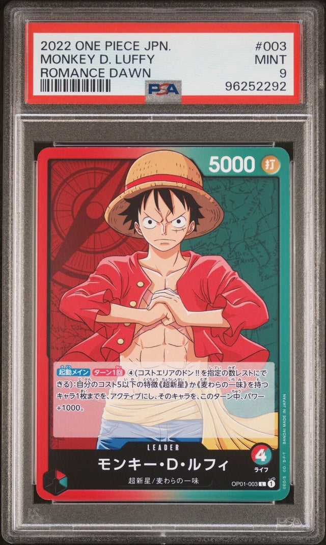 PSA 9 MINT JAPANESE ONE PIECE 2022 MONKEY D. LUFFY OP01-003 ROMANCE DAWN
