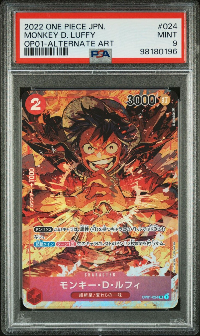 PSA 9 MINT JAPANESE ONE PIECE 2022 MONKEY D. LUFFY OP01-024 ROMANCE ALT ART