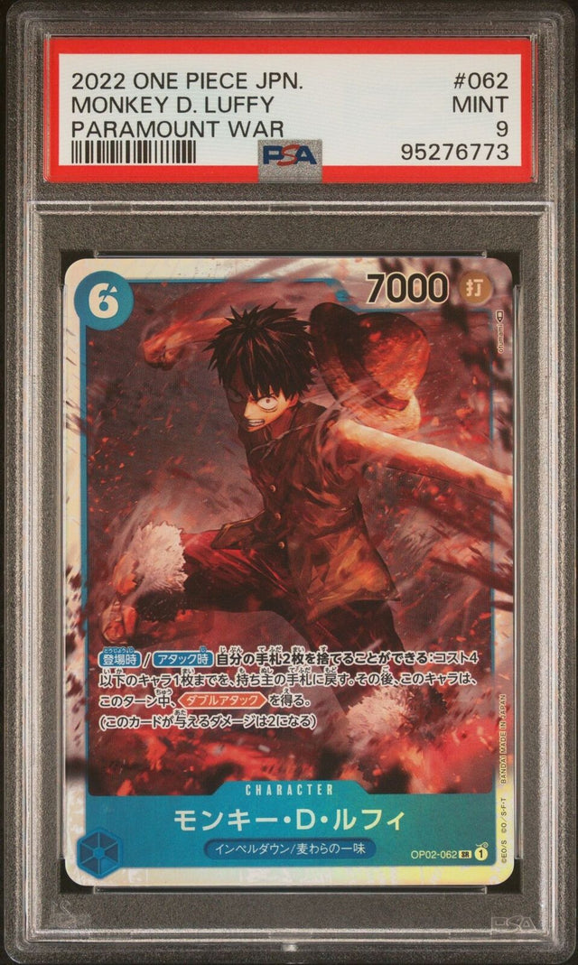 PSA 9 MINT JAPANESE ONE PIECE 2022 MONKEY D. LUFFY OP02-062 SR PARAMOUNT WAR