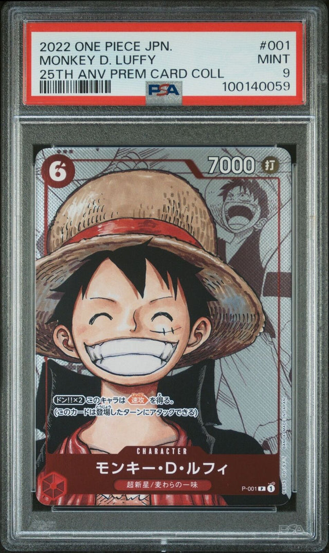 PSA 9 MINT JAPANESE ONE PIECE 2022 MONKEY D. LUFFY P-001 25TH ANNV. PROMOS