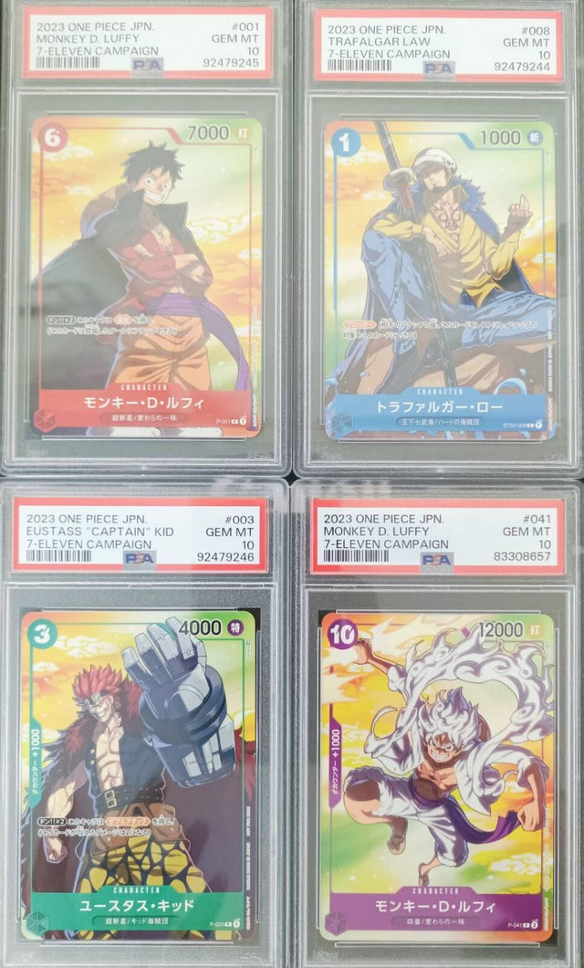 Set 4 PSA 10 Japanese ONE PIECE 7-LEVEN Luffy P-041 P-003 P-001 ST03-008