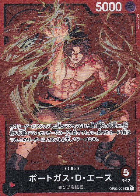 JAPANESE ONE PIECE CARD PORTGAS D. ACE OP03-001 CHAMPIONSHIP NM