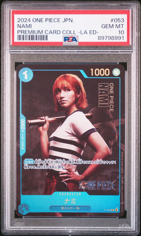 PSA 10 GEM MINT JAPANESE ONE PIECE 2024 NAMI P-053 PREMIUM CARD COLL LA ED
