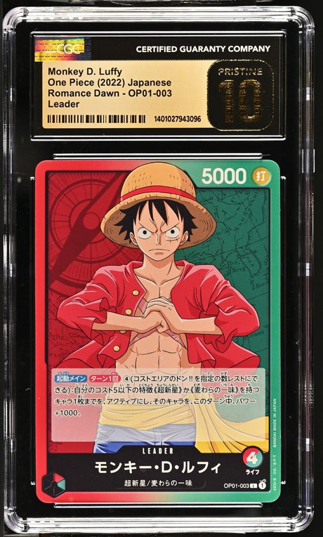 CGC 10 PRISTINE Japanese ONE PIECE 2022 MONKEY D. LUFFY OP01-003 ROMANCE DAWN