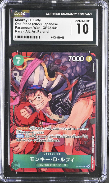 CGC 10 GEM MINT Japanese ONE PIECE 2022 MONKEY D. LUFFY OP02-041 ALT ART