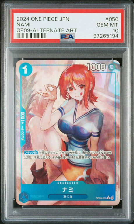PSA 10 GEM MINT JAPANESE ONE PIECE 2024 NAMI OP09-050 ALTERNATE ART