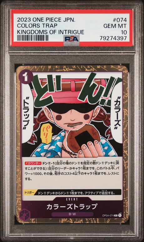 PSA 10 GEM MINT JAPANESE ONE PIECE 2023 COLORS TRAP OP04-074 KINGDOMS OF INTRIGU