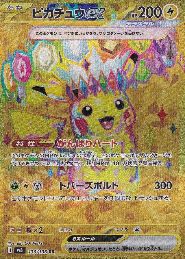Japanese Pokemon Card PIKACHU EX 136/106 Super Electric Breaker SV8